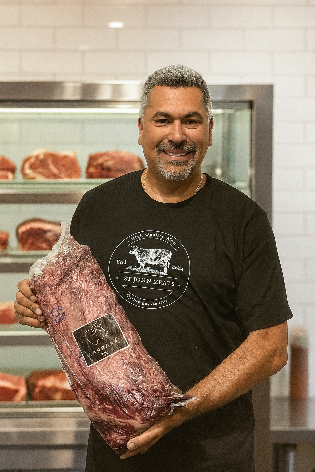 Photo: Joe Midolo, owner of St. John Meats, with fine Wagyu beef. Courtesy: St. John Meats.