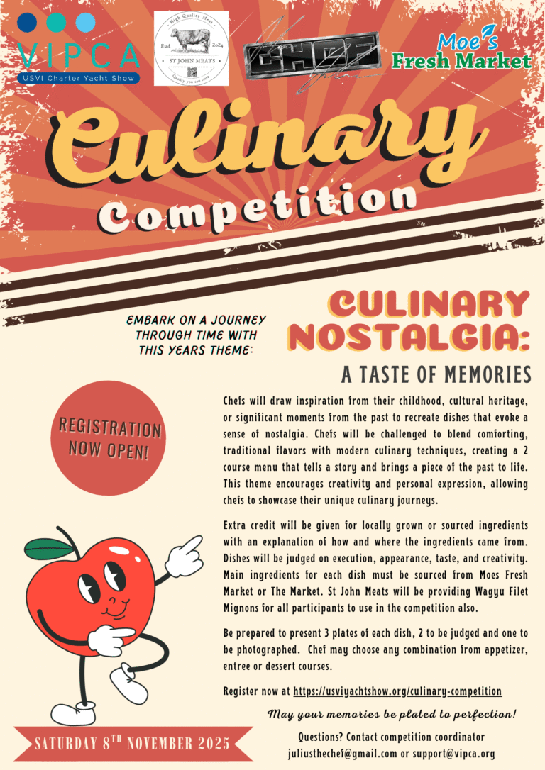 Taking place on Saturday 8th November, chefs are invited to embark on a journey through time and memories in this years culinary competition!  Space is limited to the first 15 chefs to register, should registration be full please e-mail Melissa at support@vipca.org to be placed on the waiting list.