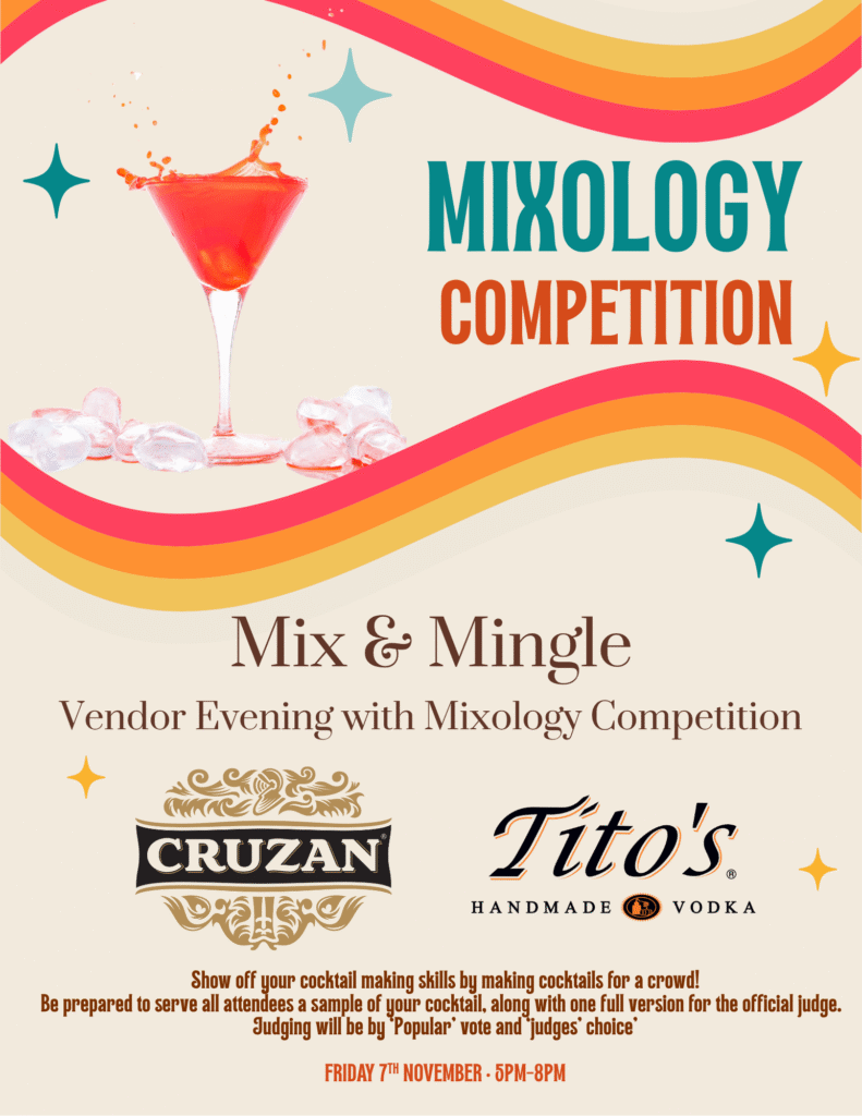 Please join us for the mixology competition!  This year we have switched things up with the addition of a “Peoples Choice” award, as well as the “Judges Choice”.  Participants will be expected to serve samples of their cocktails to attendees from their stations during the evening event on Friday, November 7th.  Participants can choose from either Cruzan rum or Tito’s vodka for their creations.  Space is limited to the first 15 Mixologists to register, should registration be full please e-mail Melissa at support@vipca.org to be placed on the waiting list.